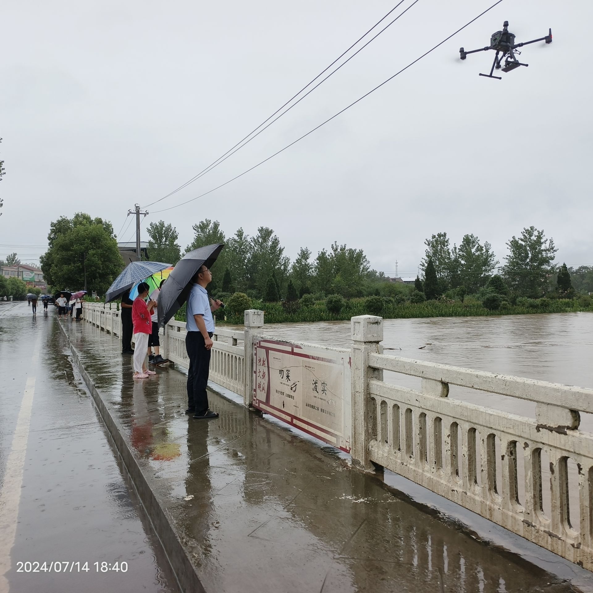 圖:2024年7月14日襄陽水文局利用無人機測流