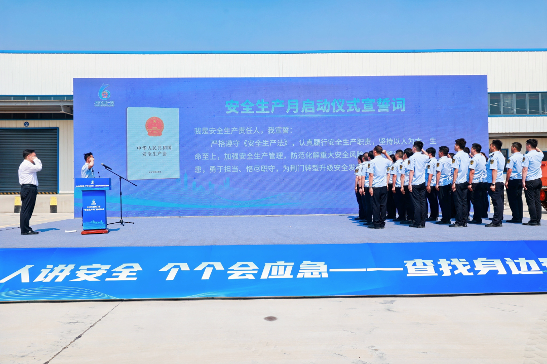 6月5日下午,荊門市安委辦、市應(yīng)急管理局在荊門市應(yīng)急物資儲(chǔ)備庫(kù)舉辦2025年全市安全生產(chǎn)月啟動(dòng)儀式暨應(yīng)急裝備列裝展示活動(dòng)。市政府副秘書長(zhǎng)劉怡軍主持活動(dòng)并講話。啟動(dòng)儀式現(xiàn)場(chǎng),158名活動(dòng)代表,舉起右手莊嚴(yán)安全宣誓,高聲承諾“堅(jiān)持以人為本、生命至上,為荊門轉(zhuǎn)型升級(jí)安全發(fā)展不懈奮斗”,響亮的誓言將啟動(dòng)儀式氛圍推向高潮。