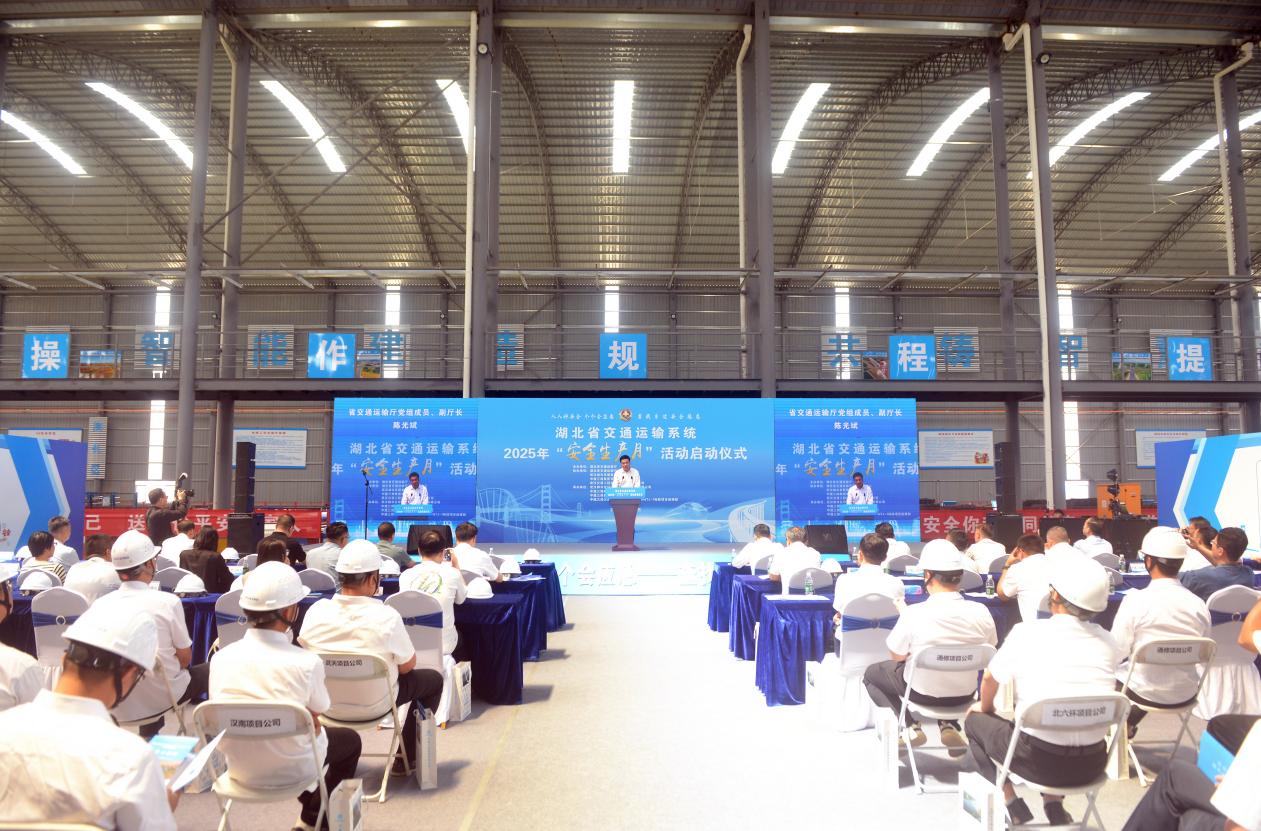6月4日,湖北交投建設(shè)集團(tuán)在二廣高速公路項(xiàng)目舉辦2025年“安全生產(chǎn)月”活動(dòng)啟動(dòng)儀式,引導(dǎo)項(xiàng)目參建單位牢固樹立安全生產(chǎn)理念,全面筑牢安全生產(chǎn)防線,努力營(yíng)造“人人講安全,個(gè)個(gè)會(huì)應(yīng)急”的共治氛圍,切實(shí)保障項(xiàng)目高效安全推進(jìn)。在啟動(dòng)儀式上,參會(huì)人員學(xué)習(xí)近期安全生產(chǎn)相關(guān)文件精神,集中觀看項(xiàng)目應(yīng)急演練教育視頻、無(wú)人機(jī)智能巡檢演示,并現(xiàn)場(chǎng)觀摩二廣項(xiàng)目部智能梁場(chǎng)、運(yùn)輸通道及“一公里示范區(qū)”。