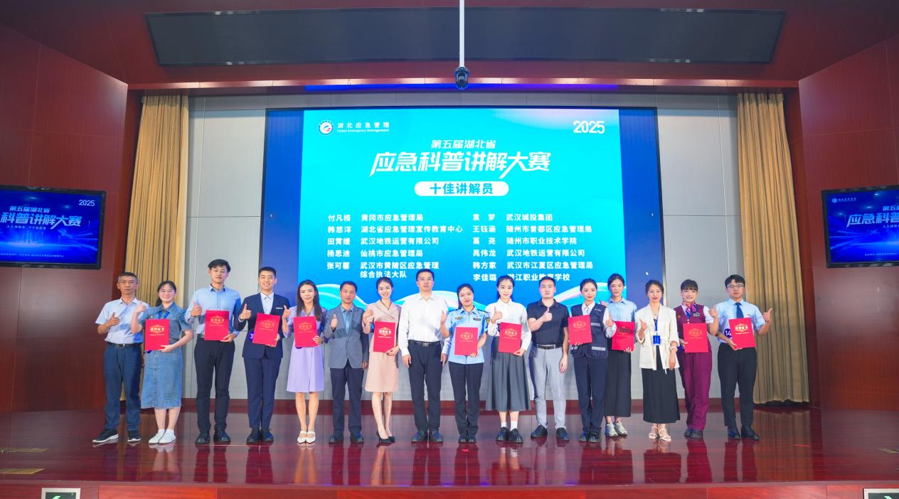 6月13日,第五屆湖北省應(yīng)急科普講解大賽決賽在武漢成功舉辦。大賽以“人人講安全 個(gè)個(gè)會(huì)應(yīng)急---查找身邊安全隱患”為主題,吸引全省各行業(yè)二百多名選手踴躍參與,集中展示湖北應(yīng)急科普工作成果。選手們緊扣極端天氣、身邊隱患、地質(zhì)災(zāi)害、火災(zāi)處置、森林防火、防汛抗洪等領(lǐng)域,懷揣著普及安全知識(shí)、培育安全文化的熱忱,以通俗易懂的講解方式,為觀眾帶來(lái)一場(chǎng)精彩的應(yīng)急科普盛宴。經(jīng)過(guò)初賽、決賽的激烈角逐,大賽評(píng)選產(chǎn)生了二十名獲獎(jiǎng)選手,分別為“第五屆湖北應(yīng)急科普十佳講解員”和“第五屆湖北優(yōu)秀科普講解員”。