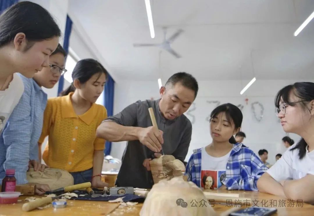 深化傳承人培養(yǎng),建立校地協(xié)同培養(yǎng)機(jī)制。支持、鼓勵非遺代表性傳承人先后在恩施職院、六角亭街道逸夫小學(xué)、芭蕉侗族鄉(xiāng)民族初中、崔壩鎮(zhèn)小學(xué)等20余所學(xué)校開展“恩施玉露制作技藝”“恩施板凳龍”“剪紙”“竹編”等非遺項(xiàng)目進(jìn)校園工作。