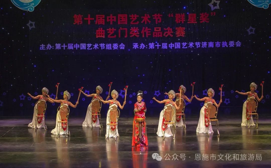 藝術(shù)創(chuàng)作精品迭出,以非遺項(xiàng)目元素為題材創(chuàng)作多個藝術(shù)精品節(jié)目,恩施揚(yáng)琴《鎮(zhèn)船石》榮獲第十屆中國藝術(shù)節(jié)“群星獎”、第十二屆湖北省“百花書會”會演創(chuàng)作金獎、表演雙金獎;恩施揚(yáng)琴《回報》入圍中國曲藝最高獎牡丹獎;燈戲《雪山放羊》、儺戲《鮑秀英招親》亮相全國戲曲百戲(昆山)盛典。