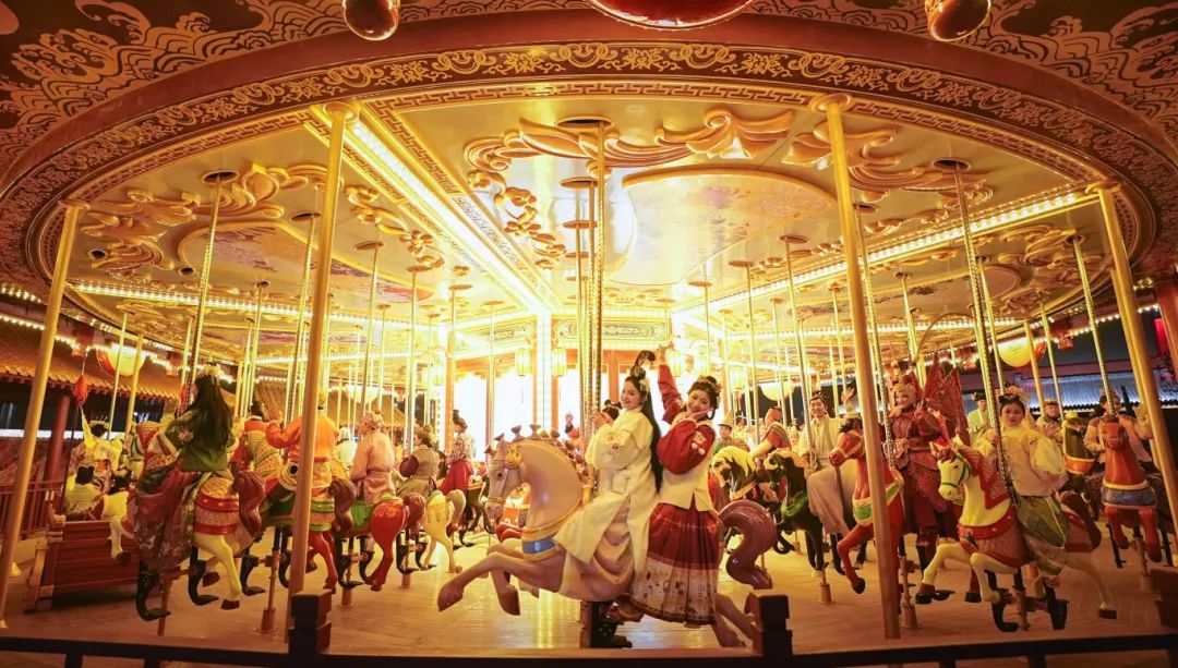 二是創(chuàng)新表達(dá)方式。以“新質(zhì)生產(chǎn)力”賦能文化的創(chuàng)新表達(dá),構(gòu)建“文化+科技+游樂”全新產(chǎn)品模式。投資近 2000 萬打造,全新開發(fā)“飛越《清明上河圖》”5D球幕影院、漂流與 VR 設(shè)備相結(jié)合的《大宋·宋慈奇幻漂流》等高科技體驗(yàn)項(xiàng)目,打造了大型夢(mèng)幻游船燈影秀《大宋·汴河燈影之新汴梁八景》、全景呈現(xiàn)裸眼 3D 版《清明上河圖》,增加了觀眾的現(xiàn)場(chǎng)體驗(yàn)感。2023 年 7 月,歷經(jīng)3年精心打造、占地 100 余畝的三期項(xiàng)目“大宋·皇家樂園”全面建成并對(duì)外開放,樂園創(chuàng)新打造“中國(guó)風(fēng)”游樂產(chǎn)品,建造全球最大、國(guó)內(nèi)首個(gè)以宋文化為依托的豪華旋轉(zhuǎn)木馬設(shè)備“骕骦千里”,并配套建設(shè)過山車類“龍騰鼓舞”、 海盜船類“神舟出?!?、花樣旋轉(zhuǎn)類“鳳舞九天” “花燈初上 ” 等共5個(gè)國(guó)內(nèi)最先進(jìn)的動(dòng)力游樂設(shè)施。