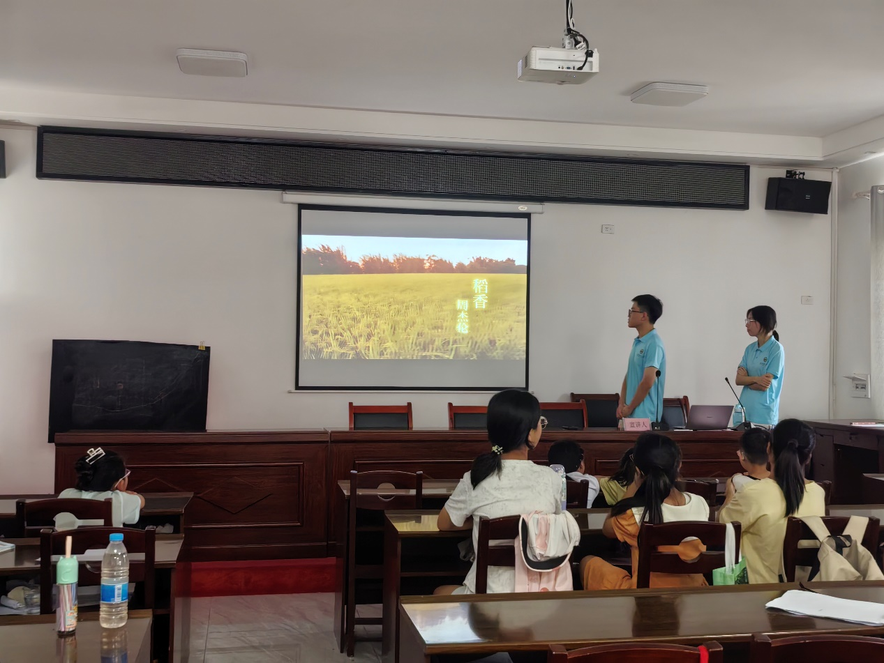 隨后,《稻香》那清新悠揚的旋律在教室里響起。志愿者們引導(dǎo)孩子們感受歌曲中描繪的田園風(fēng)光和無憂無慮的童年心境。“還記得你說家是唯一的城堡,隨著稻香河流繼續(xù)奔跑……”伴隨著熟悉的歌詞,孩子們仿佛被帶入了歌曲所營造的溫暖、恬靜的意境中。他們用純凈、自然的童聲,歌唱著對家鄉(xiāng)土地的親切感,對簡單快樂生活的向往。這首歌唱出了他們身邊熟悉的風(fēng)物,也引發(fā)了內(nèi)心深處的共鳴,歌聲里充滿了真摯的情感。