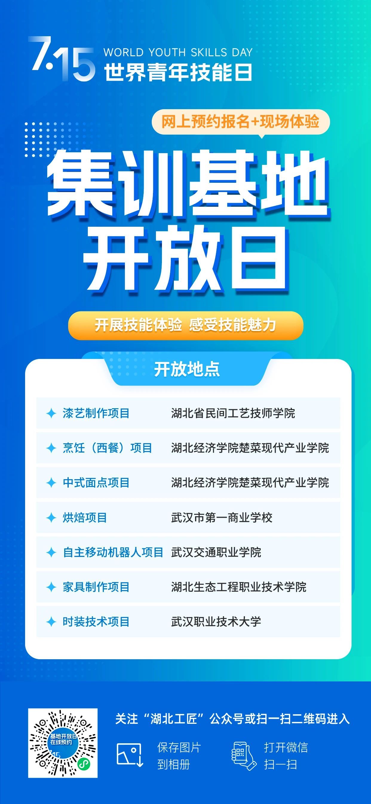 青年朋友們,技能改變命運(yùn),奮斗成就夢(mèng)想!無論你擅長(zhǎng)機(jī)器人編程,還是能把面點(diǎn)做成藝術(shù)品,只要你敢秀,湖北就給你舞臺(tái)?,F(xiàn)在就掃碼預(yù)約、答題、拍視頻,讓我們一起用技能照亮前程!