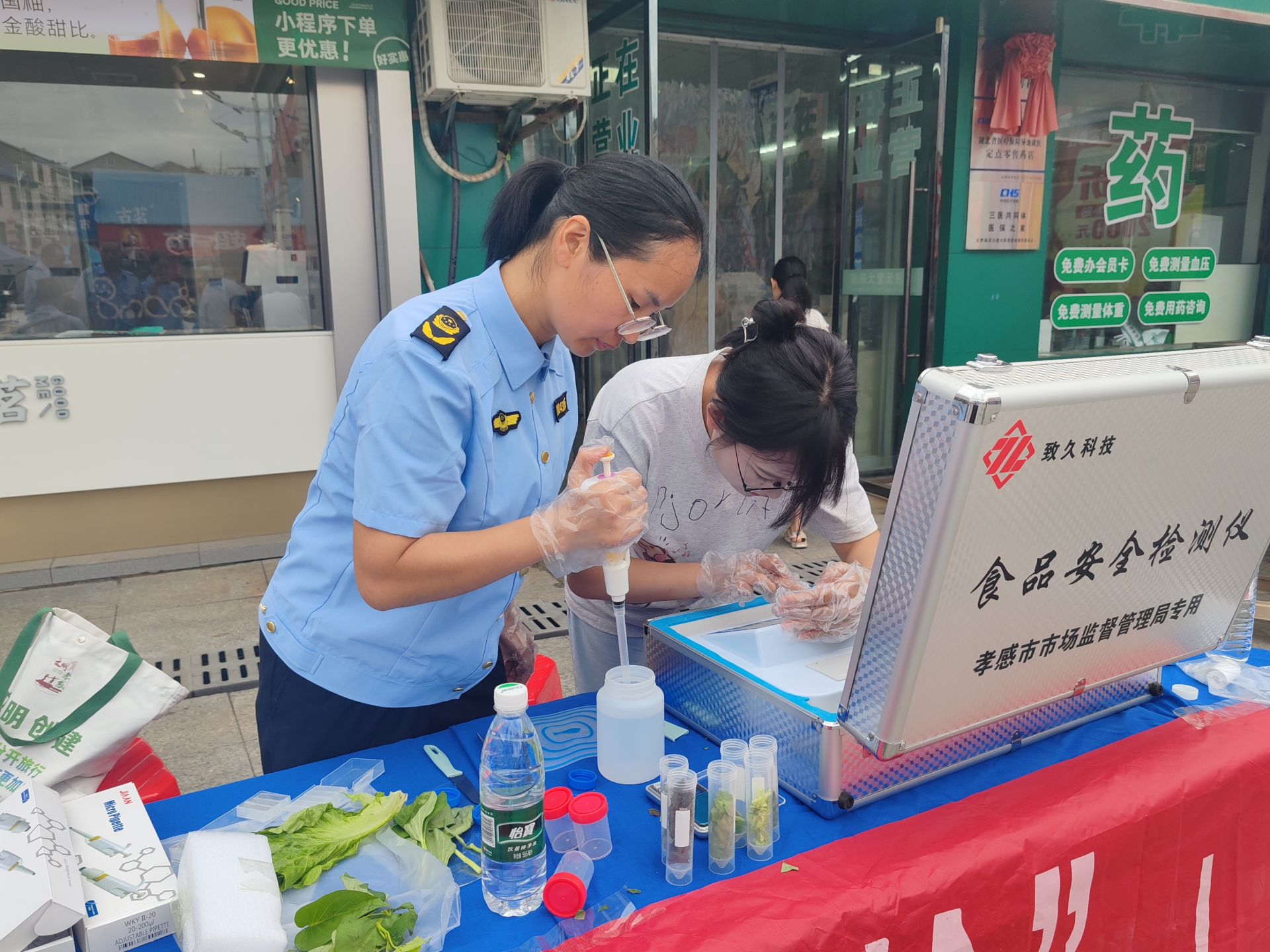 “你好,我自己買的菜,能幫我現(xiàn)場驗(yàn)一驗(yàn)嗎?”家住附近的王阿姨拎著剛買的蔬菜試探著詢問。值守的市場監(jiān)管局工作人員熱情回應(yīng):“當(dāng)然可以!阿姨您‘點(diǎn)’哪樣,我們就‘檢’哪樣,現(xiàn)場出結(jié)果!”