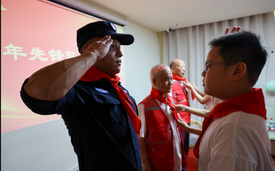 在感人至深的"軍人故事"環(huán)節(jié),69歲的中越邊境自衛(wèi)反擊戰(zhàn)老兵諶章勝、74歲的"東風(fēng)4號(hào)"實(shí)驗(yàn)參與者李文勝與新生代退役軍人胡港同臺(tái)分享軍旅經(jīng)歷。諶章勝老人講述戰(zhàn)場(chǎng)上"黨叫我去哪里,我就去哪里"的忠誠(chéng)堅(jiān)守;李文勝回憶國(guó)防科研中"甘當(dāng)無名英雄"的奉獻(xiàn)精神;胡港則分享了新時(shí)代軍人"消防防控沖鋒在前"的使命擔(dān)當(dāng)。三位英雄跨越時(shí)代的紅色敘事,讓在場(chǎng)觀眾無不動(dòng)容。東湖社區(qū)少先隊(duì)員為老英雄獻(xiàn)花、佩戴紅領(lǐng)巾,并齊唱《我們是共產(chǎn)主義接班人》,完成了一場(chǎng)生動(dòng)的紅色基因傳承。
