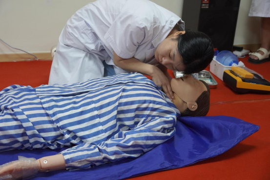 在“健康傳承與使命擔(dān)當(dāng)”環(huán)節(jié)中,創(chuàng)新設(shè)置的“家庭健康宣教中心”成為活動(dòng)亮點(diǎn)。該中心通過“理論 + 實(shí)操 + 情景模擬”的全方位培訓(xùn)模式,讓急救技能真正融入生活。專業(yè)醫(yī)護(hù)人員現(xiàn)場(chǎng)示范、分組指導(dǎo),退役老兵與青年志愿者手把手練習(xí),居民代表認(rèn)真模仿動(dòng)作要領(lǐng)?!鞍磯荷疃?5-6 厘米,每分鐘 100-120 次”“開放氣道要注意頭部后仰”…… 實(shí)操過程中,軍人的嚴(yán)謹(jǐn)細(xì)致與急救的專業(yè)規(guī)范完美融合,讓“守護(hù)生命”的技能在互動(dòng)中傳遞。