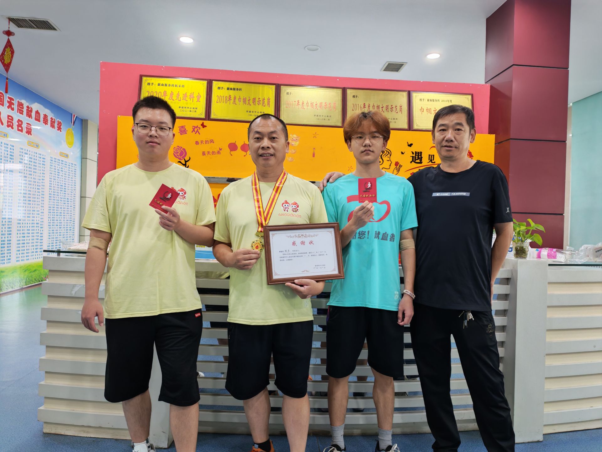 多年來,他因獻血榮獲中省市縣等獎項20多個,2014年榮獲“湖北好人”榮譽稱號,2023年榮獲2020-2021年度全國無償獻血奉獻終身榮譽獎。