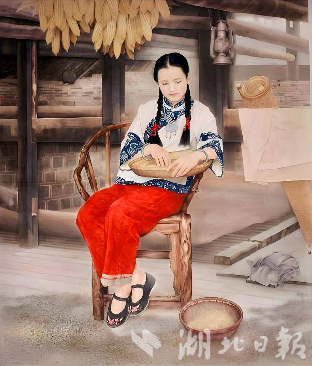 步入展廳,一幅幅美術(shù)史上的經(jīng)典作品及其描繪的美麗荊楚撲面而來。其中,湖北美術(shù)界前輩唐一禾創(chuàng)作的《江津?qū)懮弧访枥L了江津德感壩五十三梯的自然風(fēng)光,以細(xì)膩的筆觸勾勒出梯田如織、遠(yuǎn)山如黛的景象,層次分明、渾然天成。湯文選創(chuàng)作的《婆媳上冬學(xué)》表現(xiàn)婆媳二人在一個(gè)風(fēng)雪交加的傍晚相互攙扶趕去學(xué)文化的場(chǎng)景。李乃蔚《銀鎖》是深入鄂西農(nóng)村生活創(chuàng)作的佳作,描繪佩戴銀鎖的土家族少女形象,將中國畫寫實(shí)技巧推向新高度。此外,王曉愚作品《世紀(jì)三峽》、曹丹作品《陽光下的大橋澆筑工》等全國美展大獎(jiǎng)作品也集中展示。