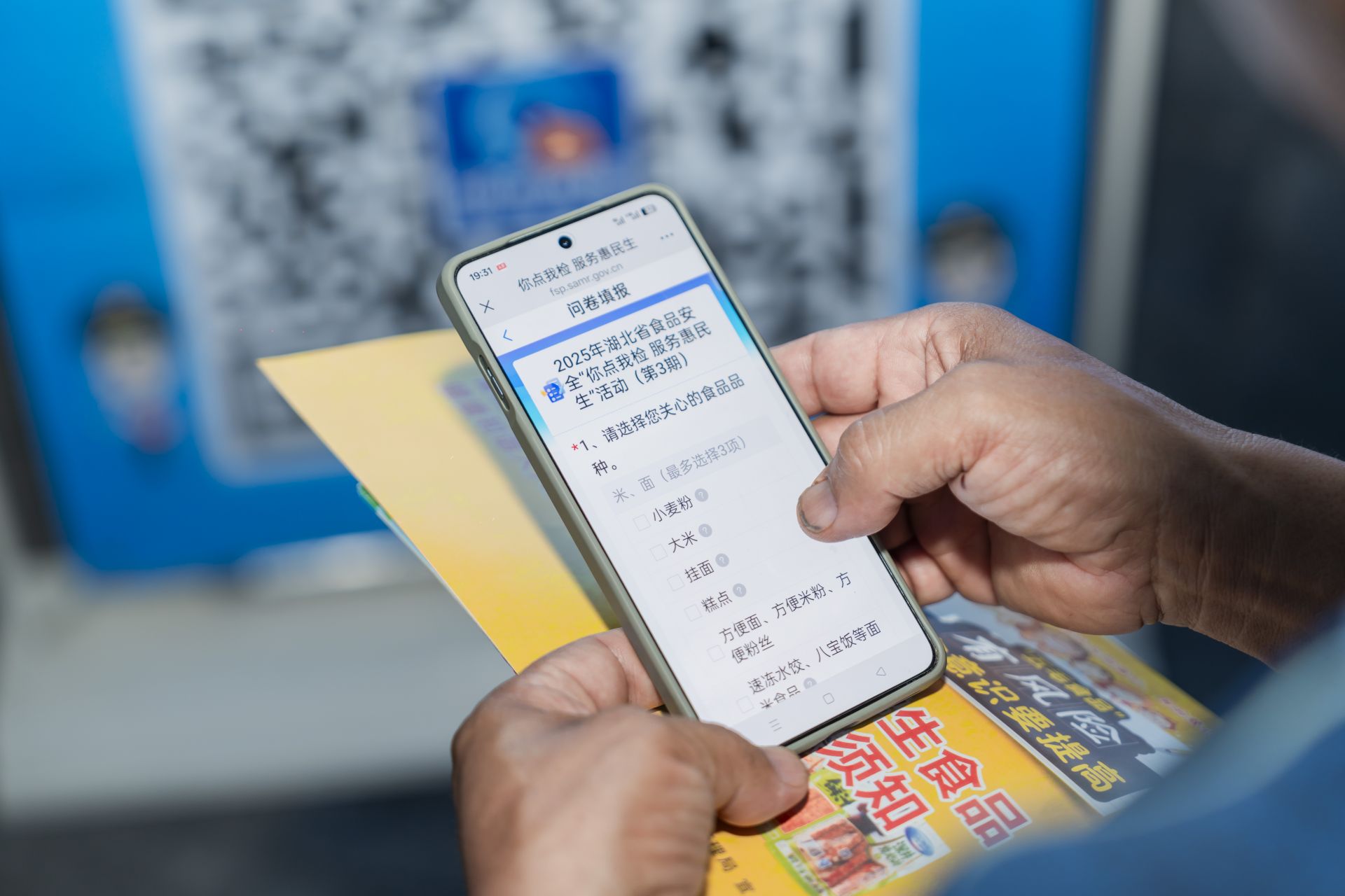 “大叔,您用手機掃一掃這個二維碼,就可以參與點選。”在活動現(xiàn)場,市場監(jiān)管工作人員向來往群眾發(fā)放調(diào)查問卷及食品安全科普資料,并邀請消費者通過掃碼進入“你點我檢 服務惠民生”民意征集系統(tǒng),勾選自己關心的食品種類、經(jīng)營場所、檢測項目。“夏天天氣熱,都愛點外賣,希望你們多檢測一下”。在問卷征集過程中,不少消費者提出比較關注外賣食品安全。