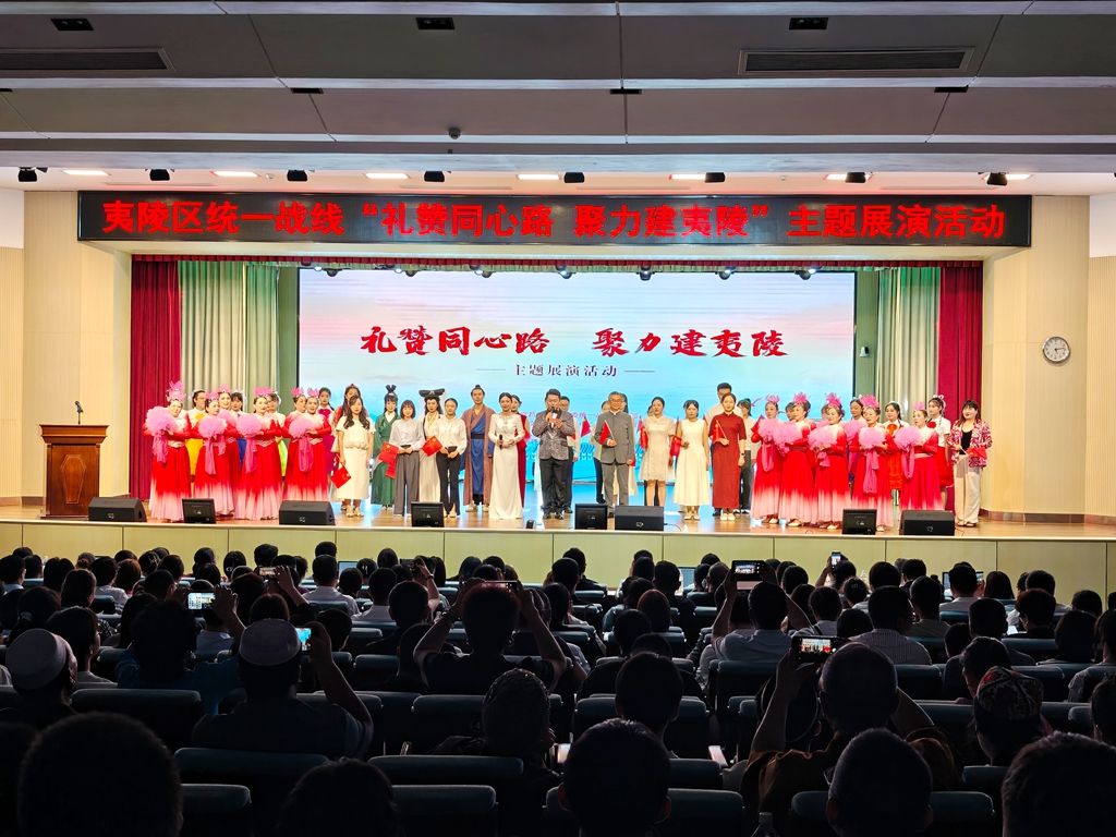 8月20日,夷陵區(qū)統(tǒng)一戰(zhàn)線“禮贊同心路 聚力建夷陵”主題展演活動在三峽高中大禮堂舉辦。各民主黨派夷陵區(qū)基層組織、區(qū)工商聯(lián)及鄉(xiāng)鎮(zhèn)商會、區(qū)知聯(lián)會、區(qū)新聯(lián)會、區(qū)光促會、港澳臺僑界、民族宗教界等統(tǒng)一戰(zhàn)線成員代表及三峽高中師生近800人齊聚一堂,追憶崢嶸歲月,共話同心使命。宜昌市委統(tǒng)戰(zhàn)部副部長吳磊,區(qū)領導王曉艷、譚宏清出席活動。