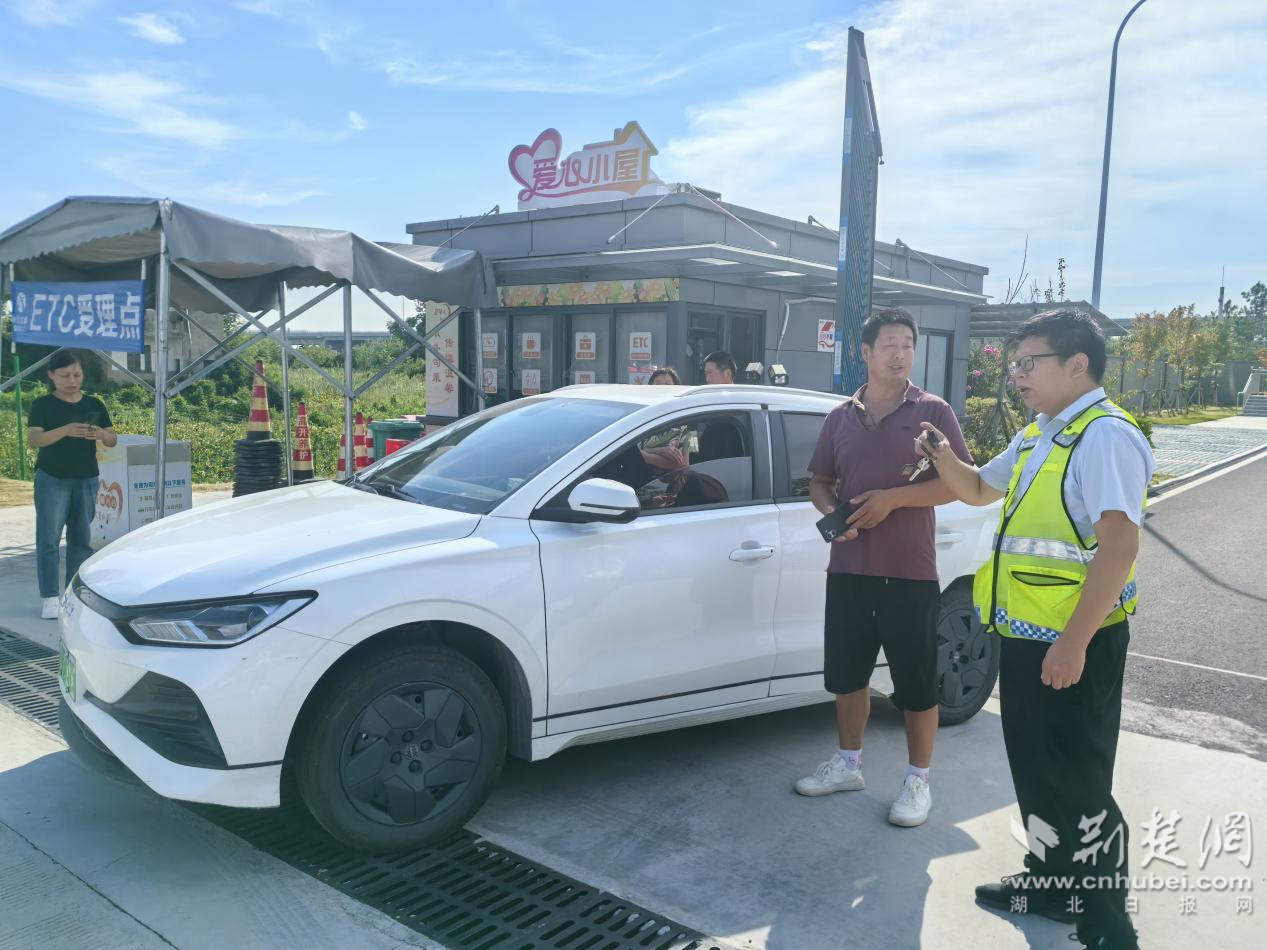 8月26日下午3點(diǎn)40分,湖北交投京珠運(yùn)營公司孝感西收費(fèi)站外,一輛車牌為鄂J新能源電車因電量耗盡突發(fā)拋錨。收費(fèi)站工作人員發(fā)現(xiàn)后迅速響應(yīng),第一時(shí)間引導(dǎo)車輛至充電區(qū)啟動(dòng)應(yīng)急充電,解了司機(jī)的燃眉之急。
