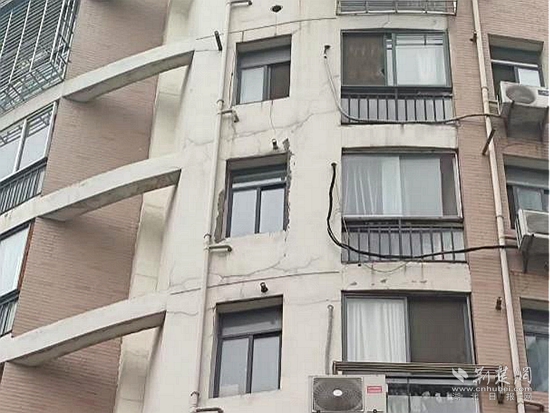 2021年4月,因加氣磚質量存在問題,遇水膨脹導致外墻開裂,一道近2米長的裂縫橫亙樓體,外墻面的水泥塊經(jīng)常脫落,居民出行存在極大的安全隱患。