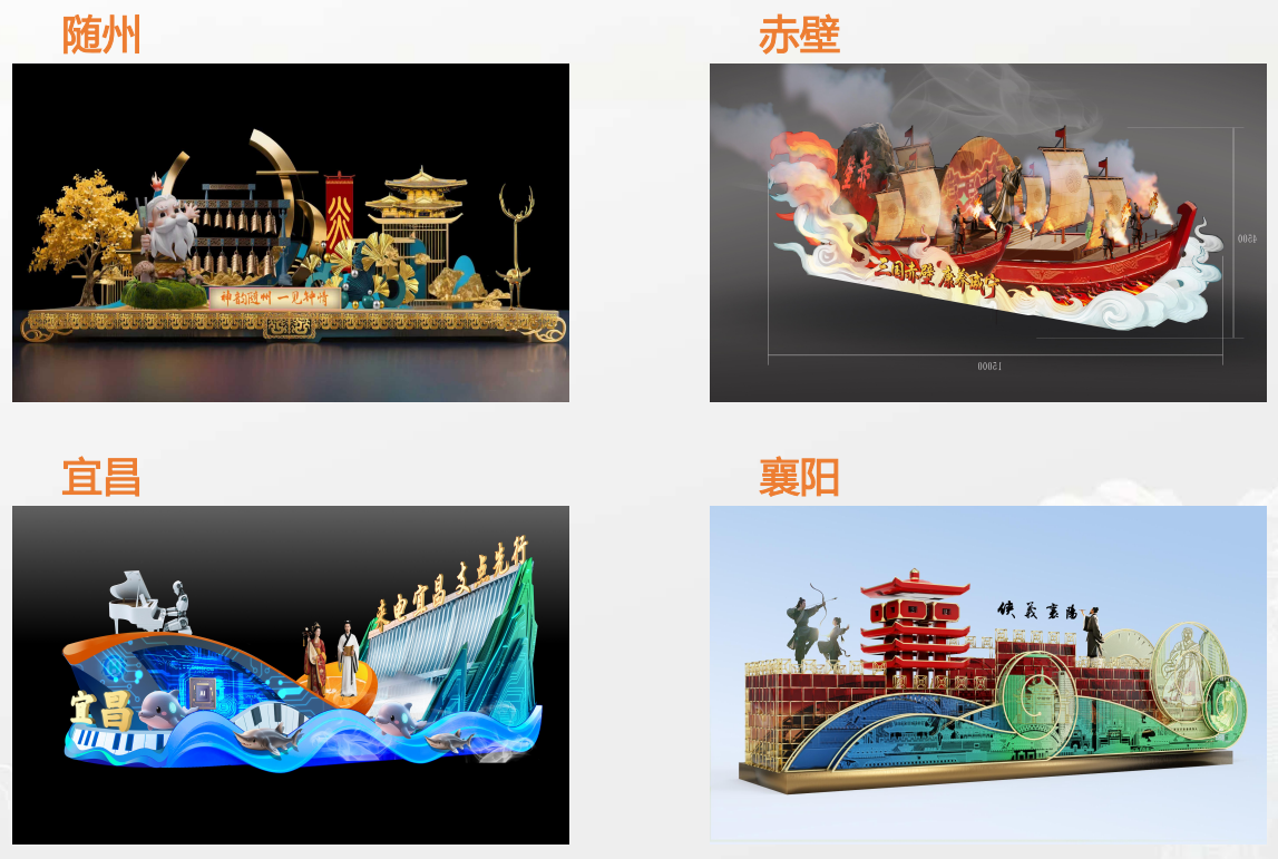 20臺(tái)精美花車,是本次文旅IP大展演最大的看點(diǎn),主要分布在武漢國(guó)際博覽中心中央大舞臺(tái)及A1—A6館內(nèi)環(huán)室外區(qū)域。