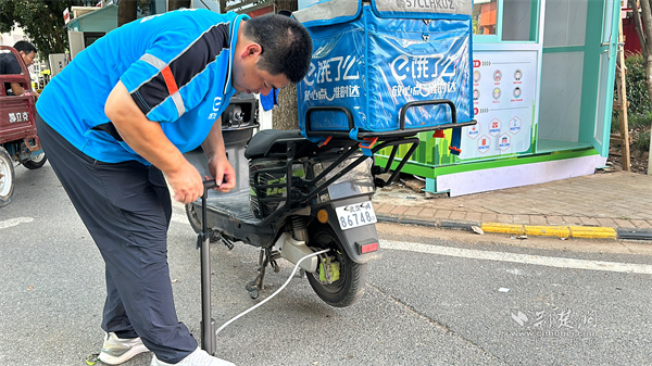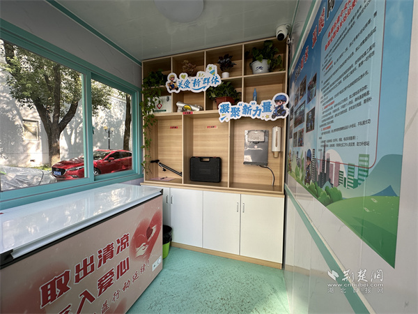 社區(qū)在北大門入口處設(shè)立的“暖心補(bǔ)給站”,成了小哥們的“能量加油站”。拉開補(bǔ)給站的冰柜,冰爽的礦泉水整齊擺放;醫(yī)藥箱里,創(chuàng)可貼、碘伏、藿香正氣水等應(yīng)急藥品一應(yīng)俱全;維修工具箱和電動(dòng)打氣筒已幫十多位小哥解決過電動(dòng)車爆胎、零件松動(dòng)的難題;打包袋也方便了小哥臨時(shí)更換破損外賣包裝?!跋奶焖屯瓴停瑏磉@兒取瓶冰水,渾身的燥熱都散了,心里也涼快!”快遞小哥王師傅邊說邊拿起一瓶水,臉上滿是滿足。