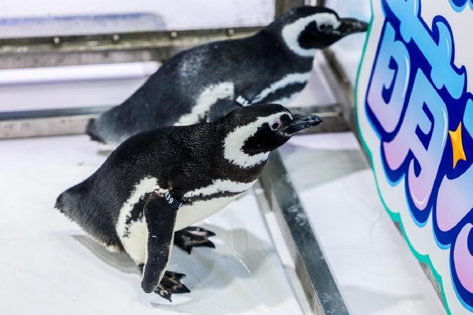 博覽會(huì)首日下午,2只體態(tài)優(yōu)雅的麥?zhǔn)檄h(huán)企鵝,在專(zhuān)業(yè)保育員的悉心陪伴下,邁著標(biāo)志性的“搖擺舞步”亮相展區(qū),立即引爆現(xiàn)場(chǎng)氣氛。保育員耐心向觀眾講解企鵝的生活習(xí)性及保護(hù)知識(shí),現(xiàn)場(chǎng)互動(dòng)氛圍熱烈,小朋友們興奮地踮起腳尖,大人們紛紛舉起手機(jī),記錄下這難得的時(shí)刻?!皼](méi)想到能在展會(huì)上看到真企鵝!太驚喜了!”來(lái)自長(zhǎng)沙的游客王先生激動(dòng)地說(shuō)道。