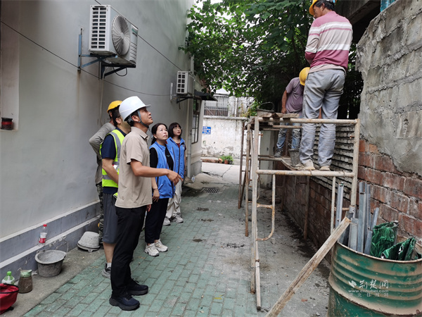 會后,武漢城建第一時間組織專業(yè)人員赴現(xiàn)場勘察,經(jīng)綜合研判制定科學維修方案,明確職責分工與時間節(jié)點。社區(qū)黨委則同步做好協(xié)調(diào)保障,一方面向周邊居民細致解讀維修計劃、解答疑問,還組織玻璃廠橫街工會小組成員定期巡查危墻區(qū)域,張貼警示標識、拉設(shè)警戒線,勸導居民遠離危險地帶;另一方面與企業(yè)保持實時溝通,確保施工按節(jié)點推進。