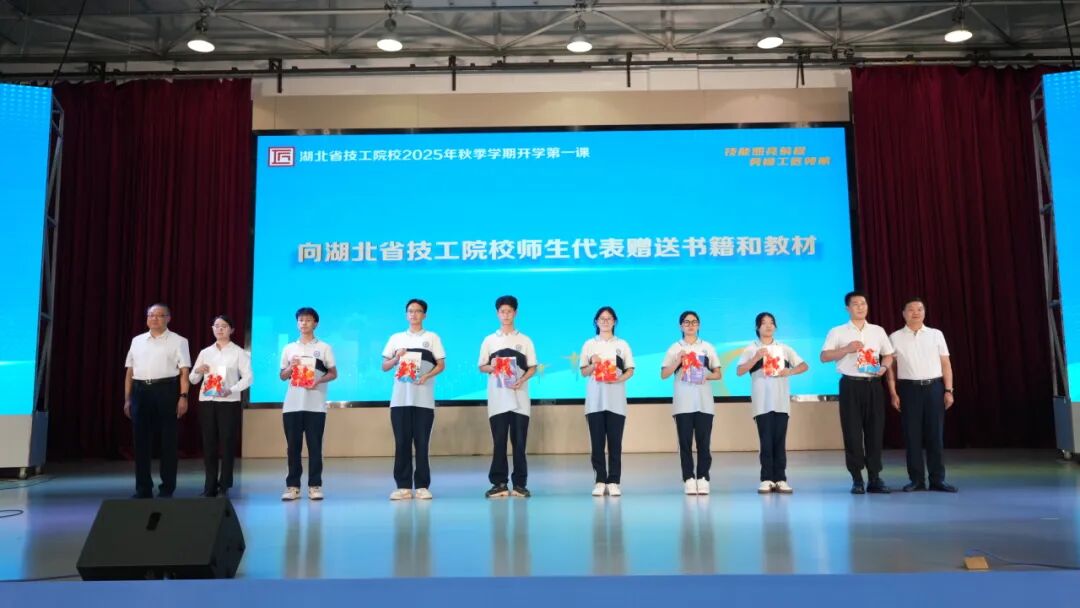 活動儀式上,中國人力資源和社會保障出版集團向湖北省技工院校贈送了“開學第一課”書籍和“技能照亮前程”培訓行動規(guī)劃教材。