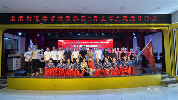文藝表演精彩紛呈,將現(xiàn)場氣氛一次次推向高潮。桃之緣舞蹈隊的扇子舞《東方紅》熱情似火,扇影翻飛間,既致敬革命先輩,又歌頌新時代;都市桃源社區(qū)的情景劇《幸福都市里 桃源花正香》生動演繹了社區(qū)共建的幸福畫卷,贏得陣陣掌聲;花樣年華舞蹈隊的《秋收起義》仿佛將觀眾帶回那段激情燃燒的歲月。最后,全場齊唱《沒有共產(chǎn)黨就沒有新中國》,嘹亮的歌聲唱出了對黨和國家的無限熱愛。