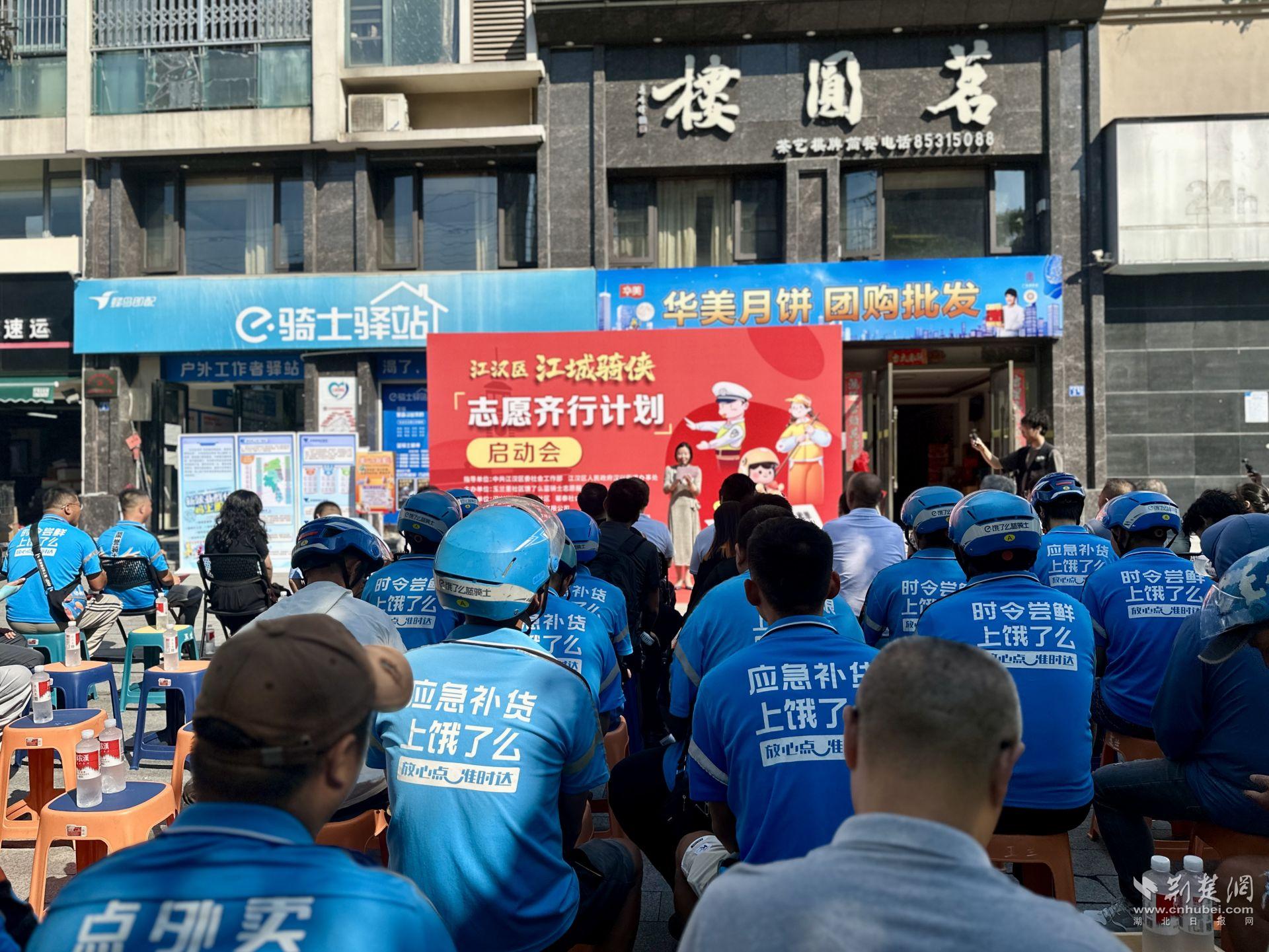 荊楚網(wǎng)(湖北日報網(wǎng))訊(記者 何婧 通訊員 黃劍平 宗昌瑞 劉心悅)9月16日上午,江漢區(qū)第六屆“社志同行·益匯江漢”公益創(chuàng)投項目——“江城騎俠·志愿齊行計劃”在紅旗渠路餓了么藍騎士驛站正式啟動。武漢市委社會工作部、江漢區(qū)委社會工作部、區(qū)總工會等相關單位負責人,以及餓了么武漢分公司、愛心企業(yè)和社會組織代表齊聚一堂,與騎手志愿者們共同見證這一公益新起點。