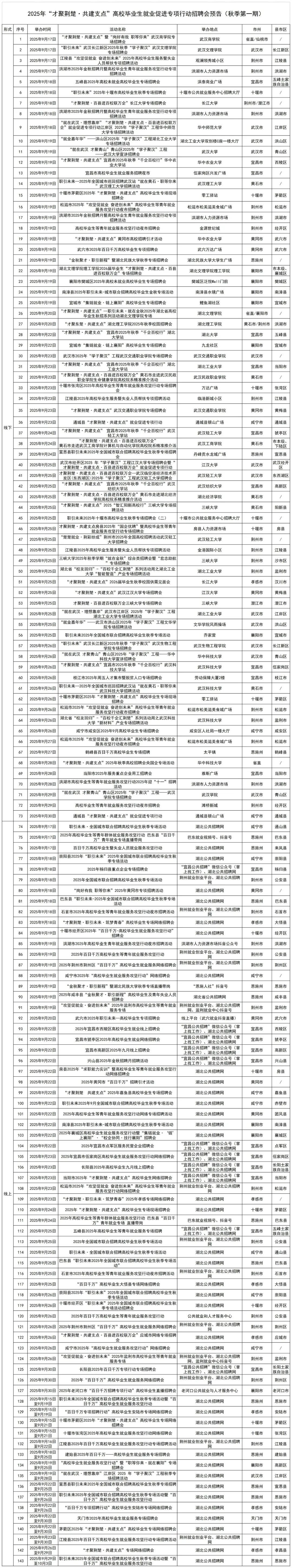 2025年“才聚荊楚·共建支點(diǎn)”高校畢業(yè)生就業(yè)促進(jìn)專項(xiàng)行動(dòng)招聘會(huì)預(yù)告(秋季第一期)