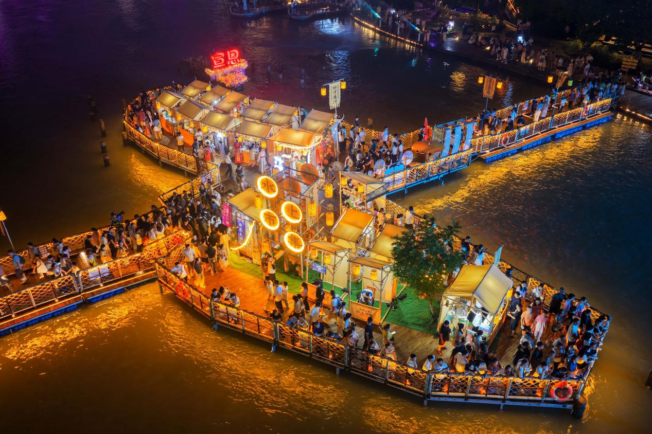 新大集拉動(dòng)新消費(fèi)。9月16日晚19:00至21:00,在恩施州宣恩縣城沿河兩岸開(kāi)設(shè)特色水上市集,商家與NPC以特定古風(fēng)造型進(jìn)行集市售賣(mài)。形式新穎、文化元素突出,深受年輕消費(fèi)者喜愛(ài)。家電、3C數(shù)碼、汽車(chē)等商品集中亮相,以舊換新、專(zhuān)項(xiàng)優(yōu)惠福利、促銷(xiāo)大禮包抽獎(jiǎng)等各類(lèi)活動(dòng)持續(xù)推出,現(xiàn)場(chǎng)消費(fèi)火熱。