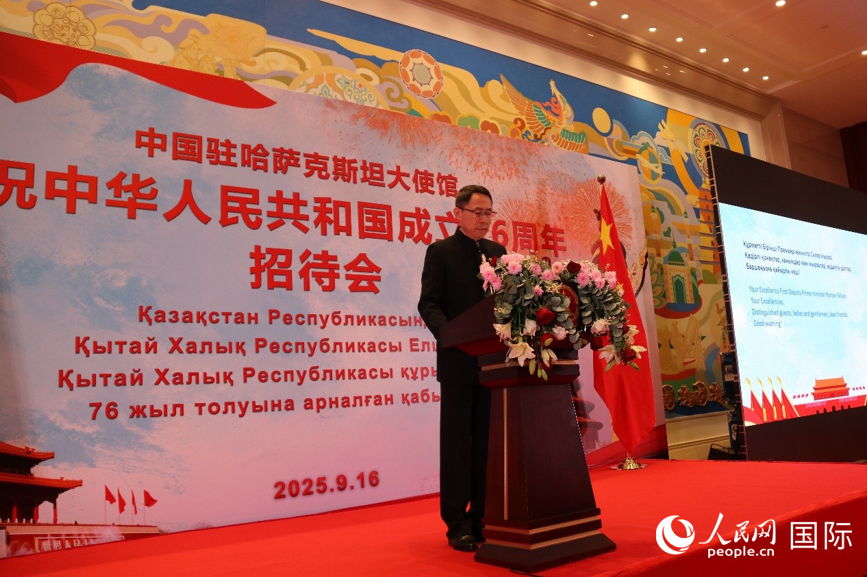人民網(wǎng)阿斯塔納9月17日電(記者李強(qiáng))9月16日,中國駐哈薩克斯坦大使館舉辦慶祝中華人民共和國成立76周年招待會(huì)。中國駐哈薩克斯坦大使韓春霖、哈第一副總理斯克利亞爾出席并致辭。哈副外長巴卡耶夫、政府和議會(huì)政要,各國駐哈使節(jié)和國際組織代表,在哈中資機(jī)構(gòu)、華僑華人和留學(xué)生代表以及使館全體外交官等約500人出席。
