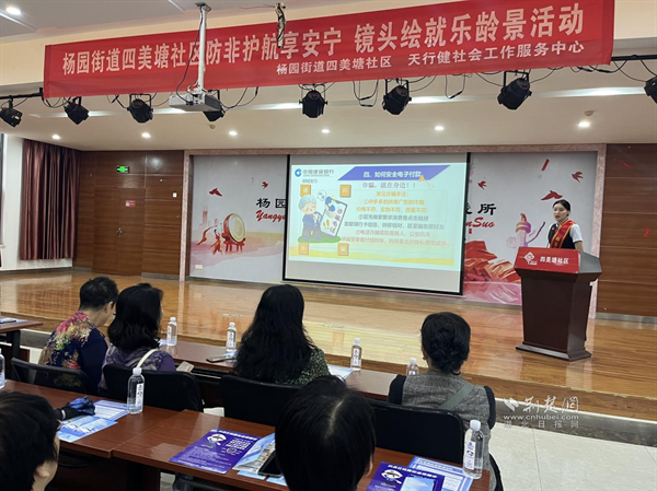 荊楚網(湖北日報網)訊(通訊員 吳喆)為提升轄區(qū)居民金融安全意識,守護群眾“錢袋子”,9月19日,武昌區(qū)楊園街道四美塘社區(qū)聯(lián)合中國建設銀行鋼城支行共同舉辦防范非法集資與電信網絡詐騙專題講座,40余名居民參與。