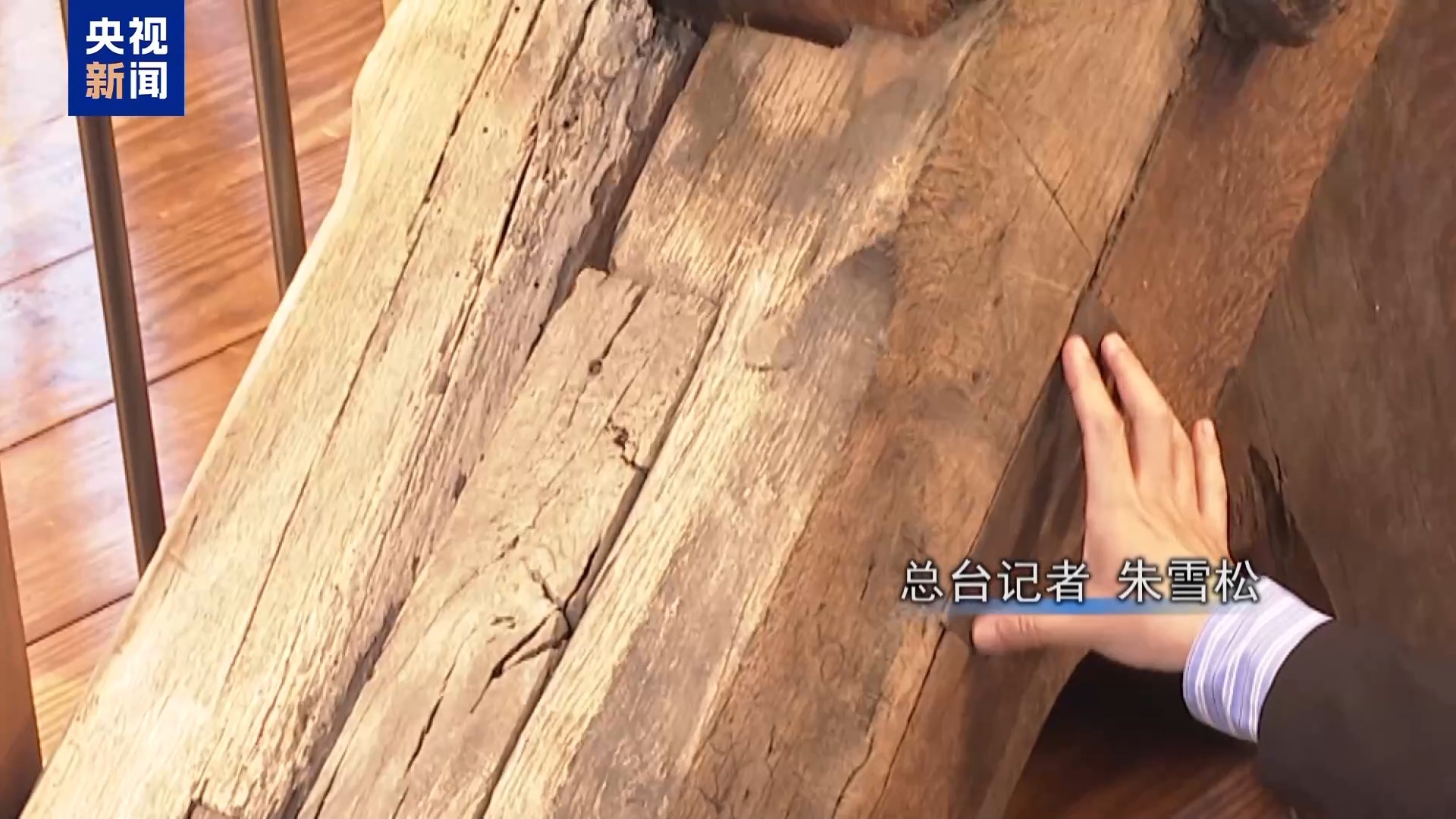 總臺記者 朱雪松:在參觀過程中,一些細(xì)節(jié)也給我留下深刻的印象。比如我旁邊的這條木梁其實(shí)是非常古舊的。修復(fù)過程中,工匠在上面做一些記號,同時(shí)用新的木結(jié)構(gòu)來代替一些破損的地方,可見修復(fù)過程采用了“修舊如舊”的原則。