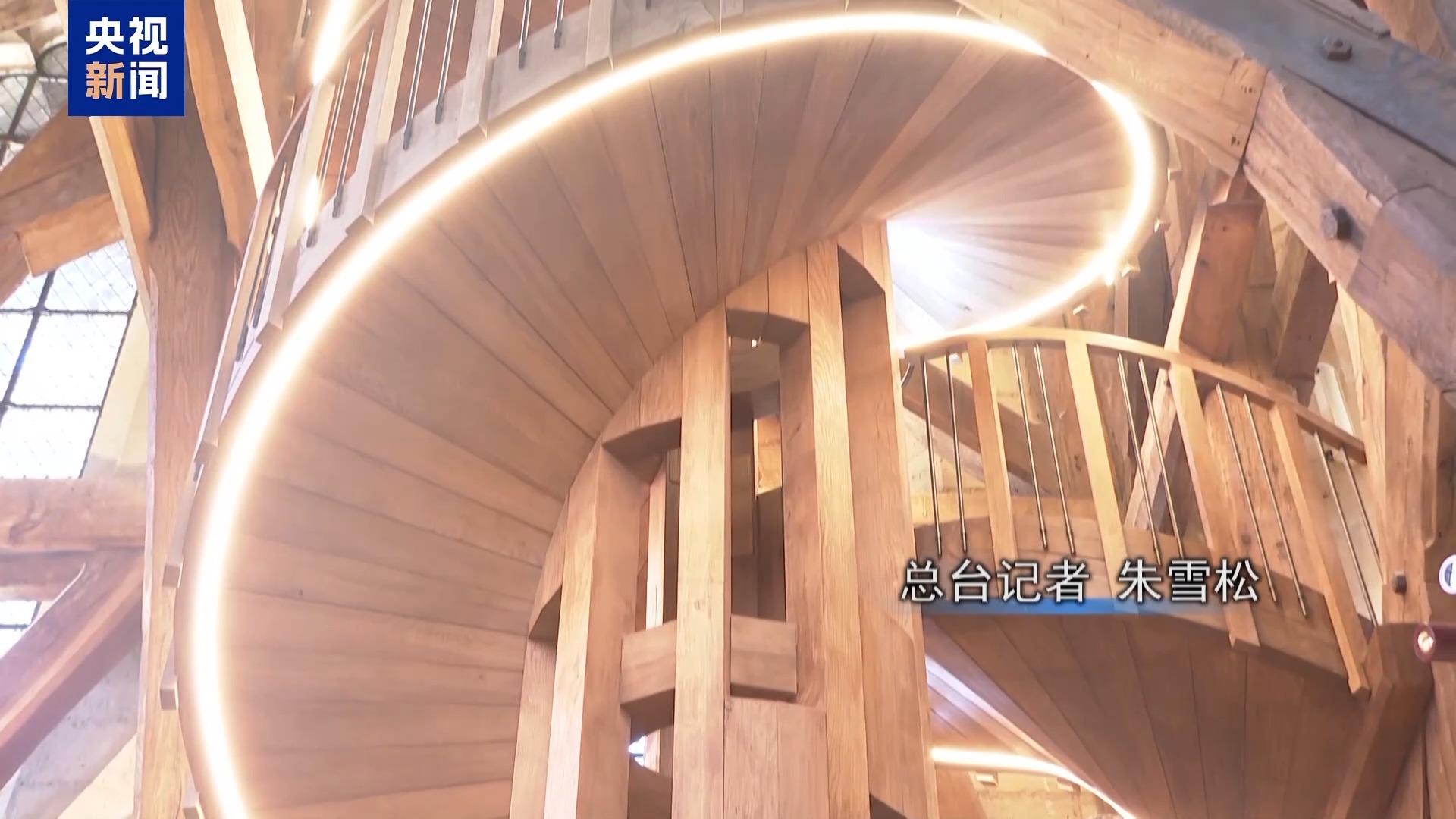 總臺記者 朱雪松:我們現(xiàn)在來到巴黎圣母院一處叫作“森林”的地方。這里是巴黎圣母院主建筑的屋頂。因?yàn)橥耆赡窘Y(jié)構(gòu)組成,所以被叫作“森林”。在六年前的火災(zāi)中,“森林”被完全燒毀。由于安全原因,我們不能進(jìn)去拍攝。據(jù)了解,修復(fù)使用了1200多棵橡樹,這也是最能體現(xiàn)修復(fù)過程難度、精度和藝術(shù)性的地方。