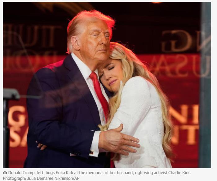 9月21日,查理·柯克的追悼會(huì)在亞利桑那州格倫代爾舉行。美國總統(tǒng)特朗普、美副總統(tǒng)萬斯以及查理·柯克的遺孀埃里卡·柯克成為主要發(fā)言人。美國億萬富豪馬斯克也現(xiàn)身追悼會(huì)現(xiàn)場(chǎng)?,F(xiàn)場(chǎng)圖片顯示,特朗普同馬斯克進(jìn)行了交談。