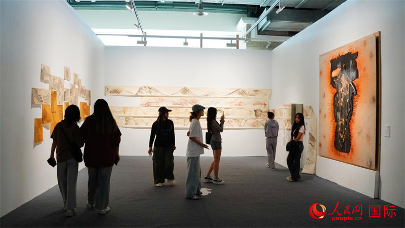 該展廳呈現(xiàn)意大利藝術(shù)家馬泰奧、羅馬尼亞藝術(shù)家安德烈婭、加拿大藝術(shù)家米歇爾、剛果(金)藝術(shù)家卡拉瑪與中國藝術(shù)家陳明坤作品。人民網(wǎng) 嚴(yán)小晶攝