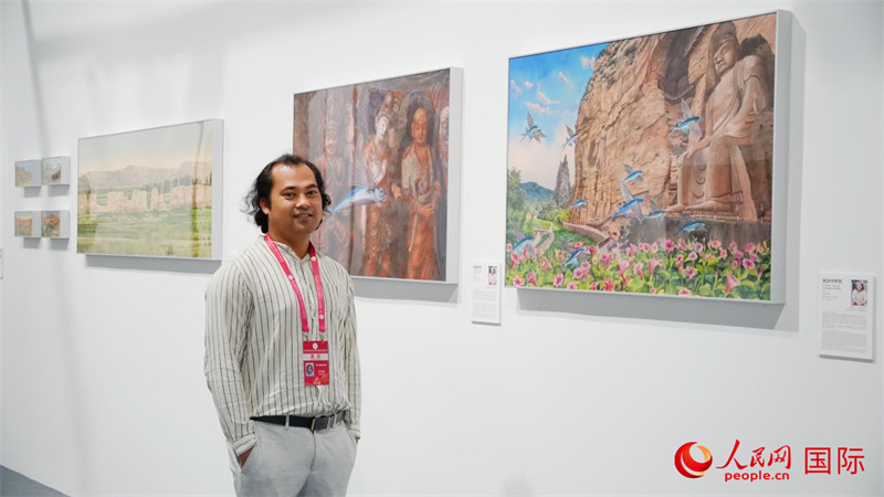 “非常開心能全程參與此次從甘肅采風(fēng)、杭州共創(chuàng)到敦煌展出的全過程!”孟加拉國藝術(shù)家蒙蒙爍在敦煌文博會現(xiàn)場難掩激動之情,他分享道:“這段經(jīng)歷注定銘刻于我生命之中。我們雖來自不同國度、使用不同語言,卻對美有著共同的追求,對和平懷有一樣的渴望,對未來秉持相通的信念。此次交流不僅為我們迸發(fā)出豐富的創(chuàng)作靈感,更讓我們結(jié)下了深厚而珍貴的友誼?!?/p>