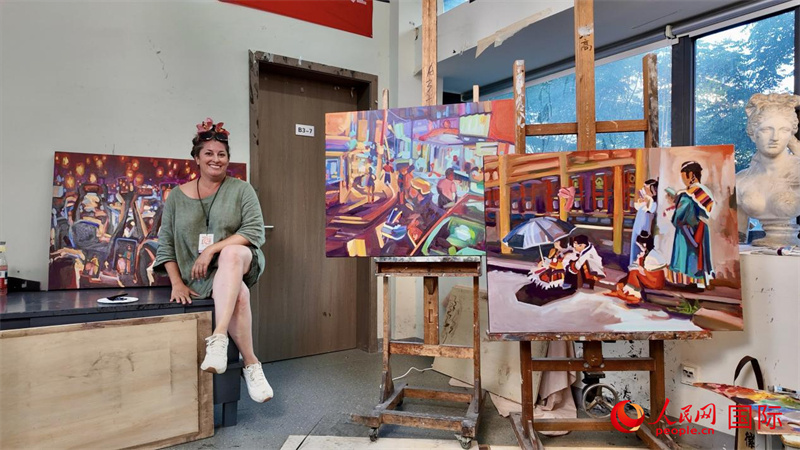 加拿大藝術(shù)家米歇爾在中國美術(shù)學(xué)院畫室創(chuàng)作。人民網(wǎng) 嚴(yán)小晶攝