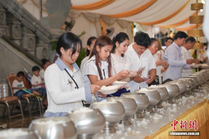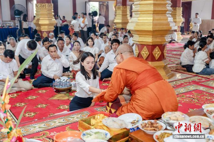 中新社記者日前受邀體驗柬埔寨亡人節(jié)傳統(tǒng)習(xí)俗。在金邊1號公路的一座寺廟里,人們帶著鮮花、蠟燭、香火以及各色供品前來布施禮佛,寺廟里的誦經(jīng)聲從凌晨4時到中午12時延綿不絕。人們或席地而坐,虔誠聆聽僧侶誦經(jīng),或排成長龍有序布施。