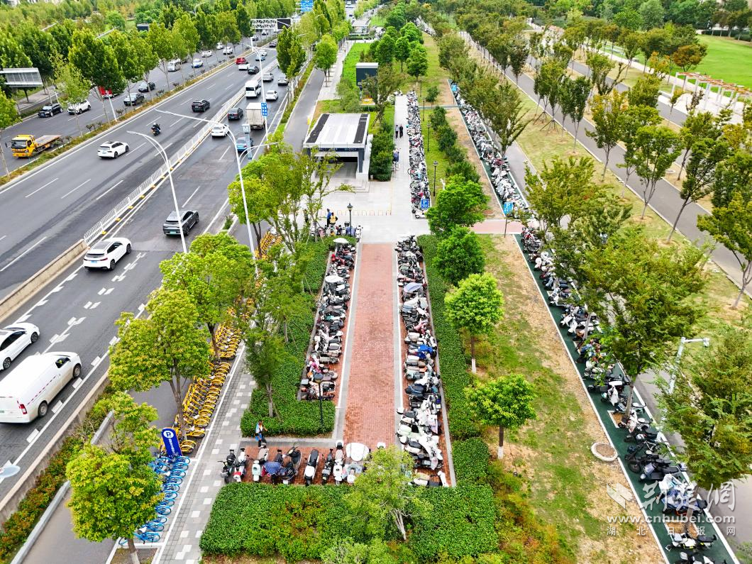 荊楚網(wǎng)(湖北日報網(wǎng))訊(記者 何婧 通訊員 汪玉平 黃慕潔 羅樂)清晨七點(diǎn)半的金山大道,陽光正好灑在二雅路地鐵站C出口。王女士騎著小電動,熟練地把車停進(jìn)新劃的白色線框里?!艾F(xiàn)在可算不用兜圈子找車位了!”她鎖好車,抬眼看了看站口那塊醒目的藍(lán)牌子——“居民電動車??奎c(diǎn)”“共享單車區(qū)”,幾個大字清清楚楚。不過幾分鐘,她已經(jīng)刷卡進(jìn)站,步履輕松。