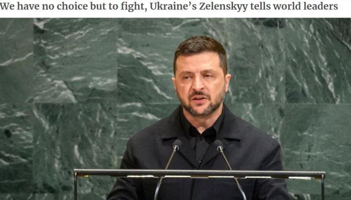 據(jù)聯(lián)合國官網(wǎng)發(fā)布的畫面,澤連斯基演講時(shí)換下了往常的套頭衫,選擇了更正式的黑色服裝。