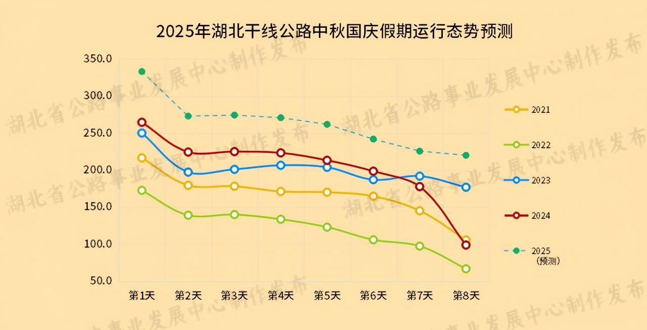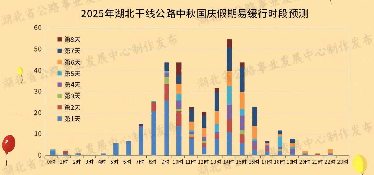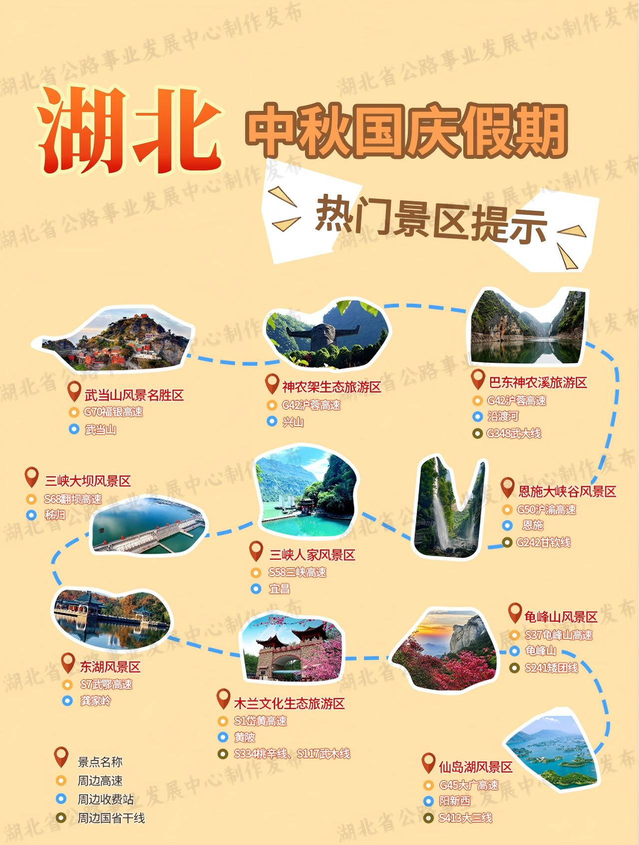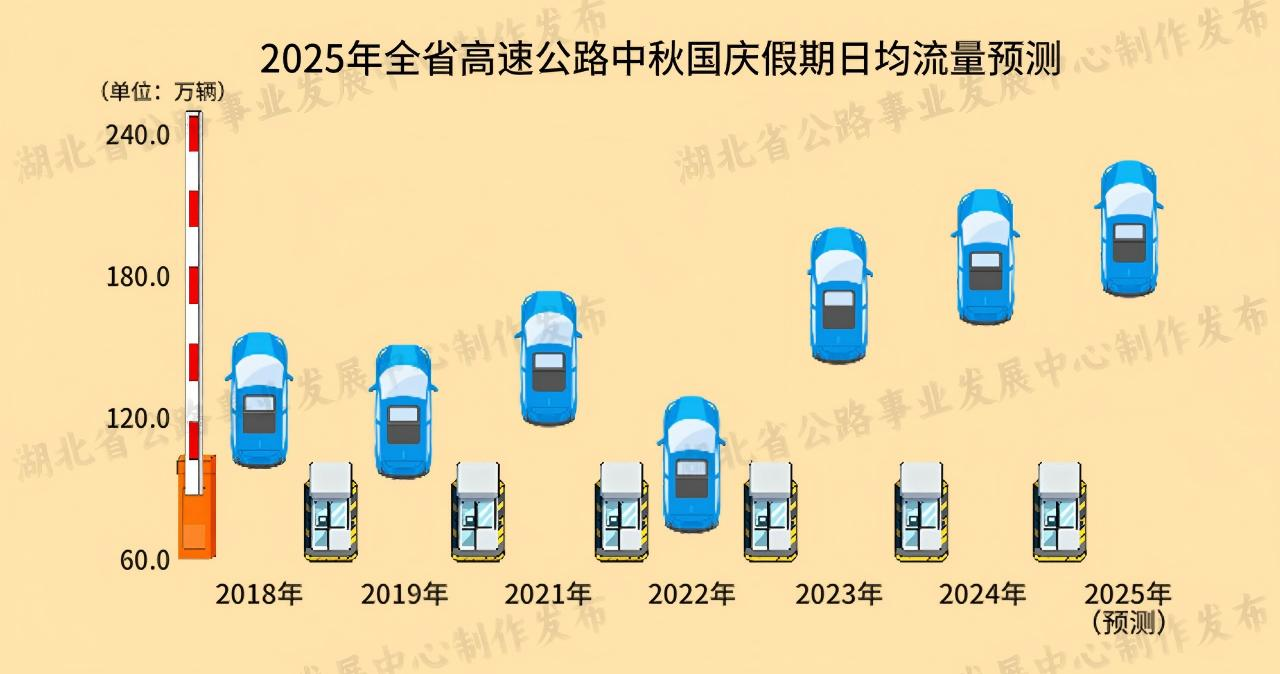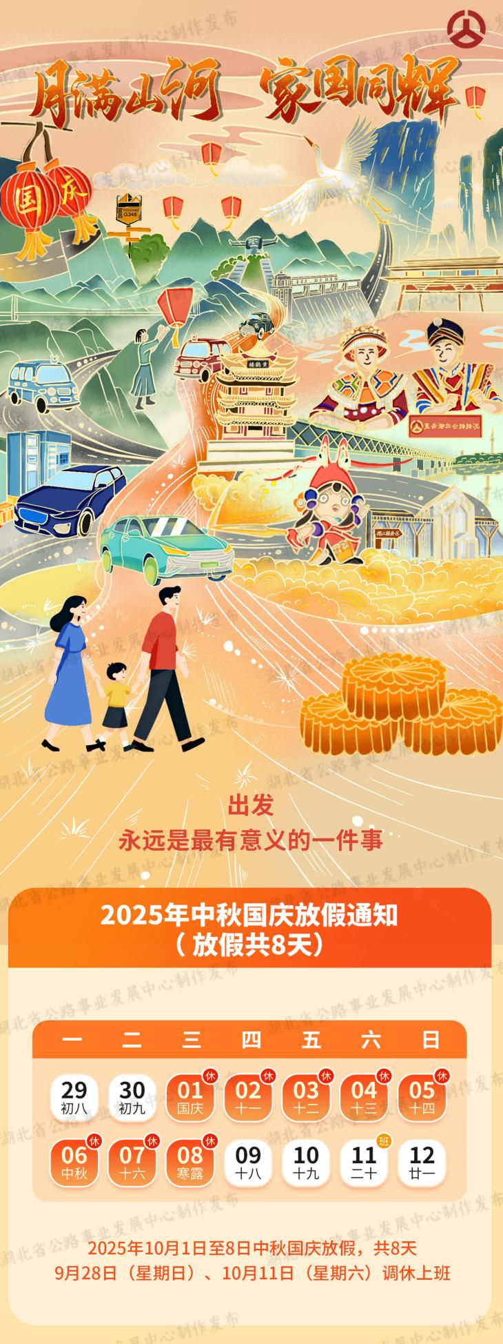 2025年中秋國慶假期即將到來,放假時(shí)間為10月1日至10月8日。根據(jù)國務(wù)院發(fā)布的《關(guān)于批轉(zhuǎn)交通運(yùn)輸部等部門重大節(jié)假日免收小型客車通行費(fèi)實(shí)施方案的通知》,中秋國慶假期期間,收費(fèi)公路對(duì)7座及以下小型客車免費(fèi)通行,免費(fèi)時(shí)間段為10月1日0時(shí)至10月8日24時(shí),共計(jì)八天。湖北省公路事業(yè)發(fā)展中心根據(jù)歷年來中秋國慶假期全省公路網(wǎng)運(yùn)行監(jiān)測情況分析,預(yù)計(jì)今年中秋國慶期間路網(wǎng)流量較平日大幅增長,社會(huì)公眾探親訪友、度假旅游等中短途出行需求將會(huì)集中釋放,省內(nèi)各市州周邊路段和通往省內(nèi)知名景區(qū)路段的交通流量將出現(xiàn)明顯增幅,省內(nèi)國高網(wǎng)、國省干線、武漢市周邊路段易出現(xiàn)不同程度的擁堵緩行。現(xiàn)編制《2025年中秋國慶假期湖北省干線公路出行指南》,為公眾平安便捷出行提供參考。