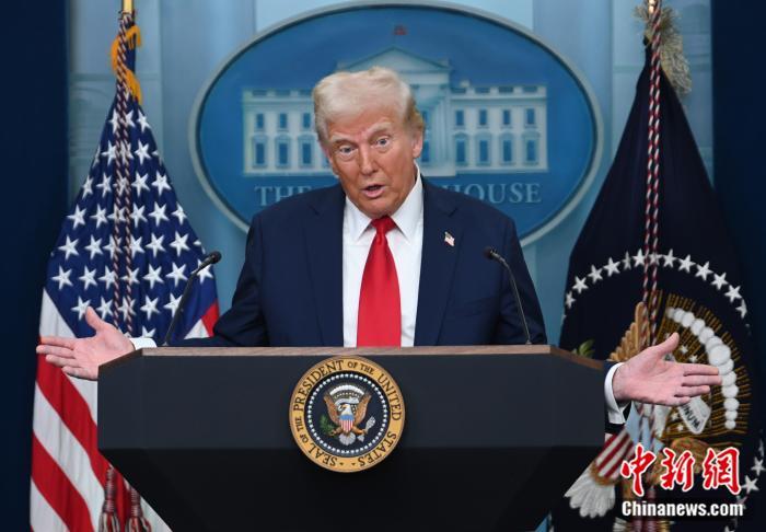 當?shù)貢r間1月30日,華盛頓,美國總統(tǒng)特朗普在白宮舉行記者會, 中新社記者 陳孟統(tǒng) 攝