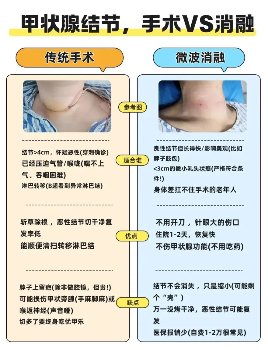 4.保留功能,無需終身服藥:消融過程只摧毀病變組織,最大程度地保留了正常的甲狀腺功能,絕大多數(shù)患者術后無需像傳統(tǒng)切除手術那樣終身服用甲狀腺素片。