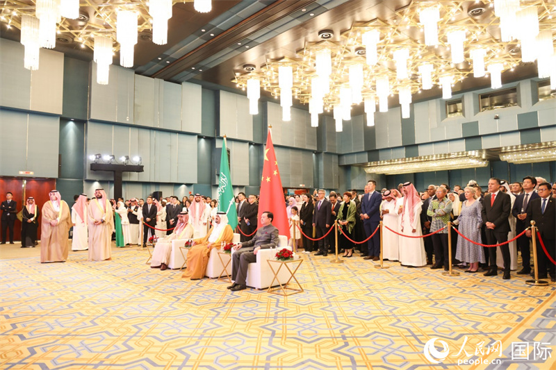 人民網(wǎng)利雅得9月26日電(記者任皓宇)9月25日,中國駐沙特使館舉行招待會,熱烈慶祝中華人民共和國成立76周年和中沙建交35周年。沙特利雅得地區(qū)副埃米爾穆罕默德·本·阿卜杜拉赫曼親王、沙內(nèi)政部副大臣阿卜杜勒阿齊茲·阿亞夫親王、沙外交部次大臣賽馬里以及沙政府有關(guān)部門和軍隊高級官員,各國駐沙使節(jié)和伊斯蘭合作組織代表,沙各界友好人士,在沙中資機(jī)構(gòu)、教師留學(xué)生、華僑華人代表約600人出席。