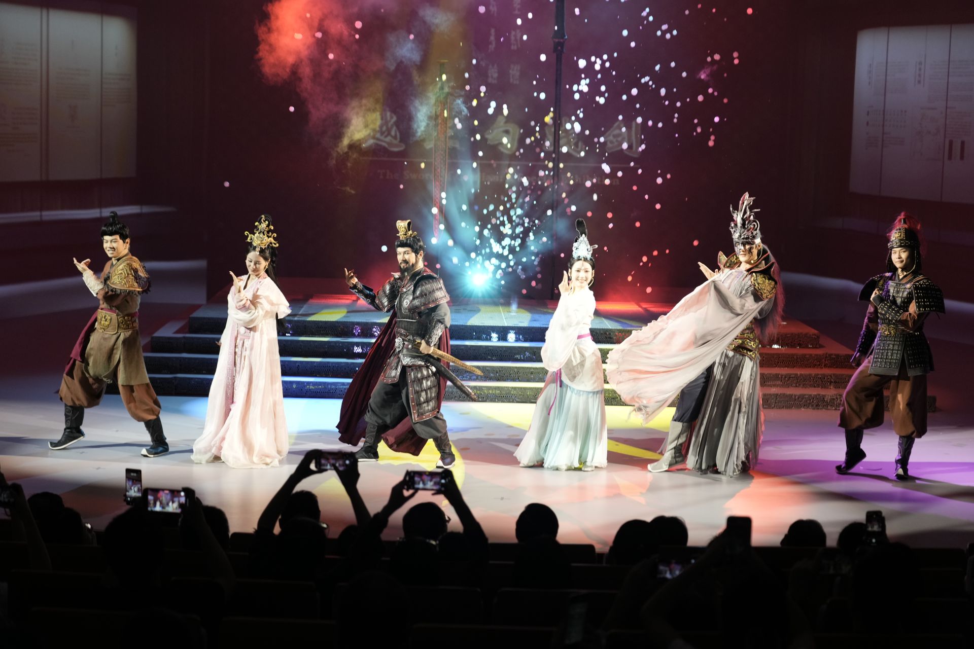 《遇見?勾踐劍》以楚越結(jié)盟為主線,通過勾踐歸國、鑄劍復(fù)國、西施入?yún)恰⒃匠?lián)姻、滅吳稱霸等篇章,講述了勾踐劍為何鑄造、又如何流入楚國的傳奇歷程,立足吳晉與楚越兩大聯(lián)盟爭霸春秋的歷史背景,生動再現(xiàn)了時代風(fēng)云。該劇實(shí)現(xiàn)了戲劇藝術(shù)與科技手段的有機(jī)融合,以創(chuàng)新的全息投影與真人互動形式,為觀眾奉上一場視聽盛宴。