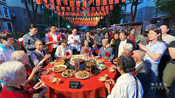 鄰里關(guān)系的升溫,離不開有溫度的聯(lián)結(jié)。如今城市里的單元樓,常隔著“一扇門的距離”,而社區(qū)的百家宴,恰好打破了這份疏離。紅燒排骨、手工餃子、梅菜扣肉,百余道家常菜擺成長桌,陌生鄰里因一道菜打開話匣子,老街坊借一碗湯嘮起家常;10位高齡老人與祖國同慶生,全場齊唱的《生日歌》里,藏著對長輩的敬重,也裹著“社區(qū)是家”的歸屬感。比起刻意的破冰活動,這樣帶著煙火氣的相聚,更能讓鄰里情在自然中流淌。