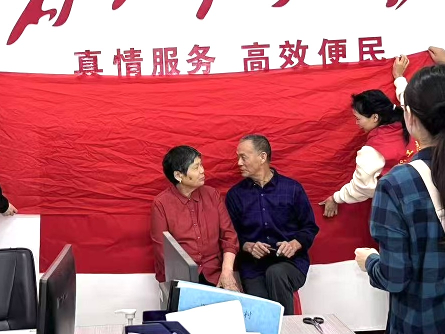 “結(jié)婚40多年了,還沒和老伴拍過這么正式的合影?!眲偱臄z完的陳爹爹笑得合不攏嘴,“今天真開心,感謝政府為我們老年人著想!”旁邊的鄧奶奶補充道。