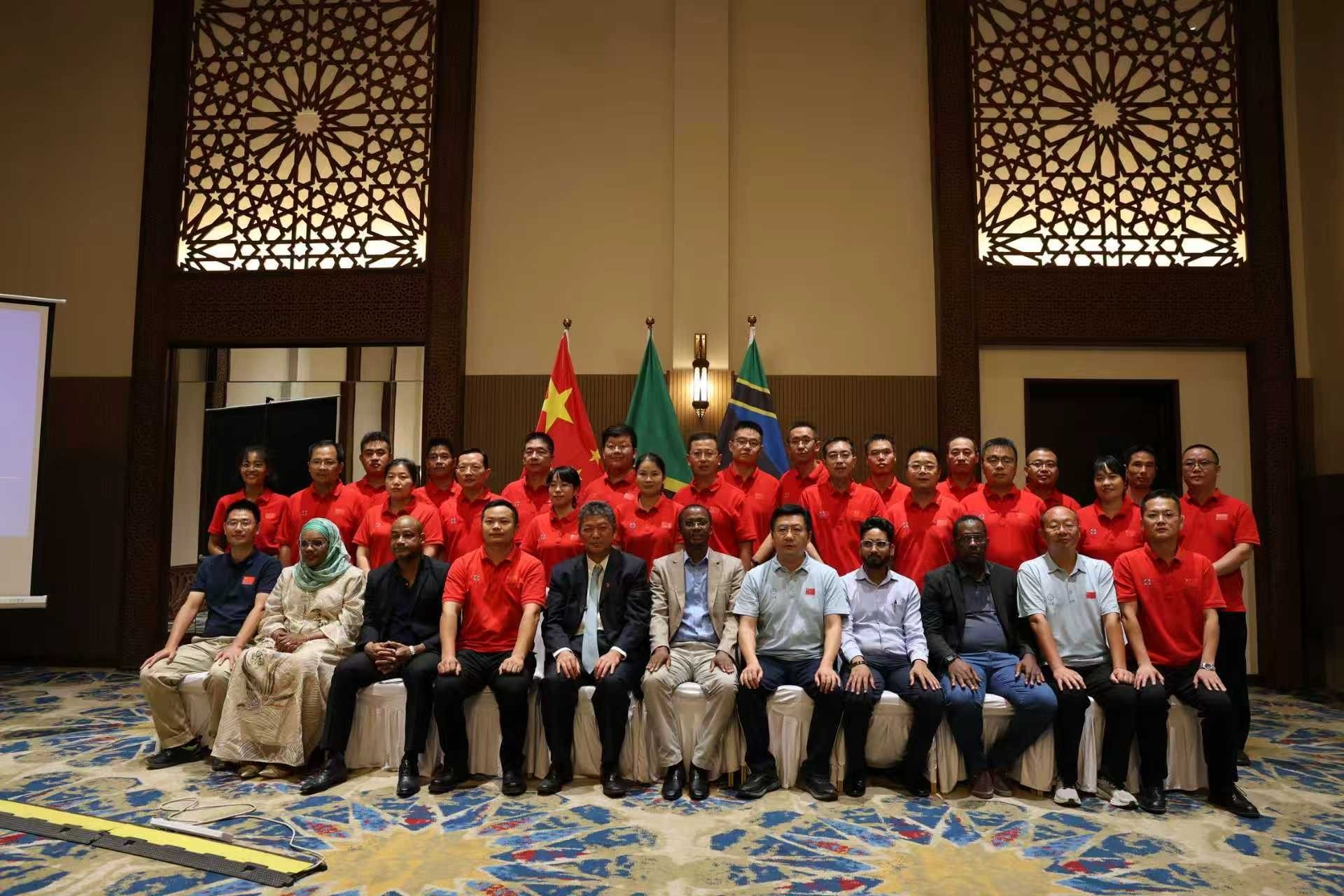 醫(yī)療隊(duì)全體隊(duì)員與桑給巴爾嘉賓合影。中國(guó)援桑醫(yī)療隊(duì)供圖