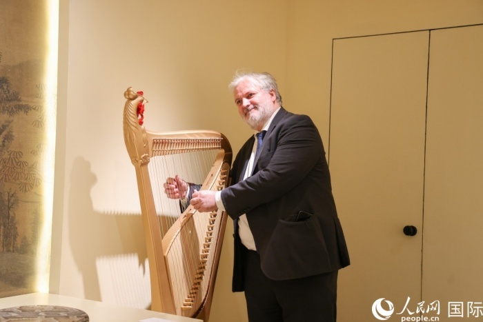 嘉賓體驗(yàn)中國(guó)樂器。人民網(wǎng)記者 任皓宇攝