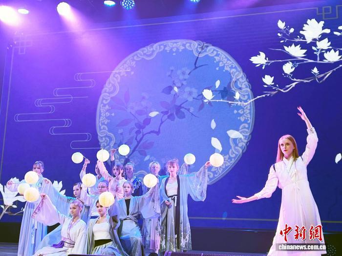 當?shù)貢r間9月27日,“月滿華誕 同心共圓”中俄人文交流活動在莫斯科548學(xué)校舉行。圖為俄羅斯學(xué)生表演“燈籠舞”。中新網(wǎng)記者 田冰 攝