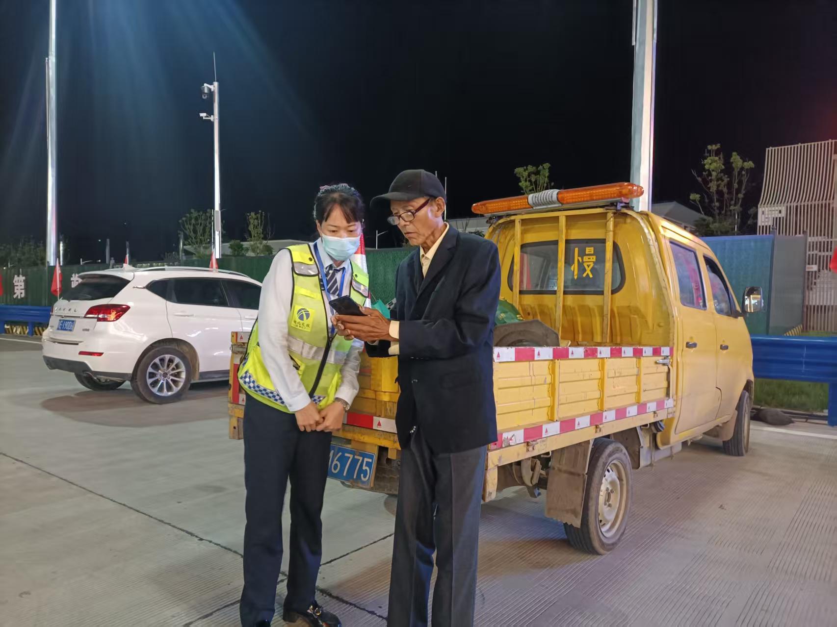 當(dāng)天凌晨2時(shí)許,一位老人茫然地站在孝感收費(fèi)站廣場(chǎng)上,神情低落,顯得不知所措。正在外場(chǎng)巡邏的收費(fèi)班長(zhǎng)王燕玲發(fā)現(xiàn)了這一情況,便主動(dòng)上前詢問。