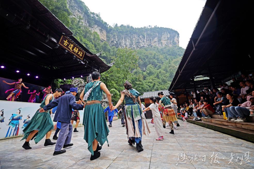 此外,“非遺鬧峽谷”,雙節(jié)間景區(qū)各處其豐富多彩的非遺文化活動(dòng)為這趟自然之旅增添不少韻味。湖北省民族歌舞團(tuán)的駐場(chǎng)演出、《地心之戀》實(shí)景劇、《鹽道古風(fēng)》原生生態(tài)表演等,讓游客在領(lǐng)略自然奇觀的同時(shí),也能深度體驗(yàn)深厚的土家苗族文化與千年巴鹽古道歷史。山水與人文在此完美交融,締造出獨(dú)一無二的旅行記憶。